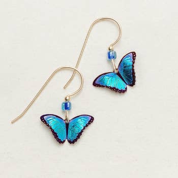 Real butterfly wings pair, whole wing, encased in resin using a proprietary process. Sterling silver earring wire, reversible!