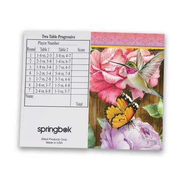 Springbok's bridge tally sheets help you keep the score totaled in style! Our tally sheets come in two tables and three tables progressive as well as regular bridge. Non-smearing and uncoated, they come in eight Springbok designs. There are 12 tally sheets in each package.