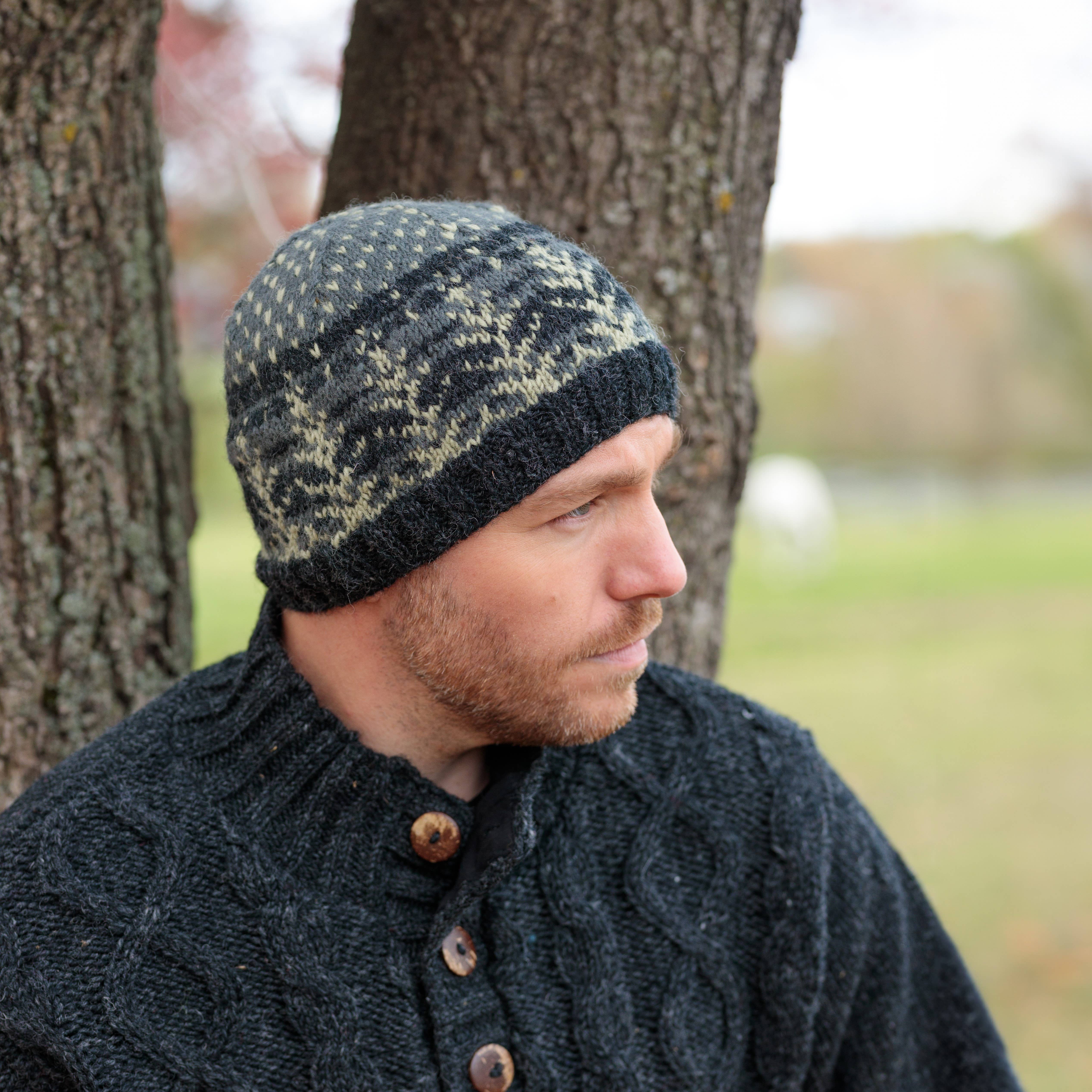 Zaine Wool Beanie Hat with Nordic Pattern