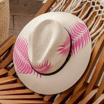 Itzel Hand Painted Resort Hat - Pink and Tan