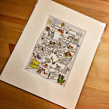 11" x 14" (image size is 9" x 12") and easily pops into any standard 11x14" frame. No mat is required. Great for the kitchen, office, bedroom or fun living space. Printed on white matte digital art paper with vibrant ink colors. Ships with a protective board in a plastic sleeve, mailed in a heavy duty, super stiff cardboard envelope. Illustrated by Jordan Sondler for The Found