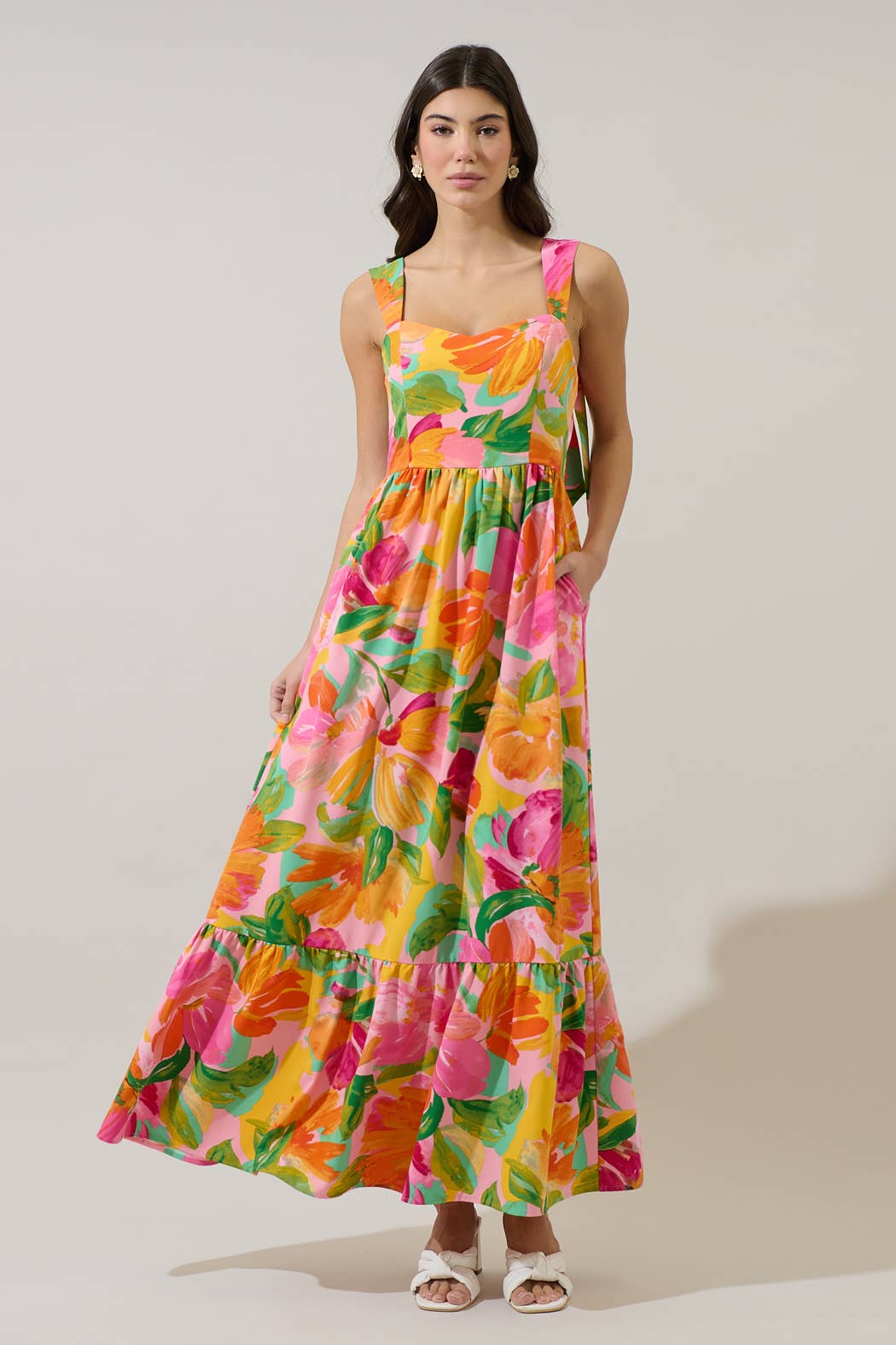 Made in India Aesthetic: Bohemian and Romantic / whimsical Care Instructions: Machine wash Dress Style: Fit & Flare Fabric: Recycled Silk Fit: Petite and Plus Size Occasion Theme: Everyday Occasion: Everyday and Resort / Vacation Pattern: Floral Season: Spring/Summer Skirt & Dress Length: Midi Sleeve Length: Sleeveless Product Language: English