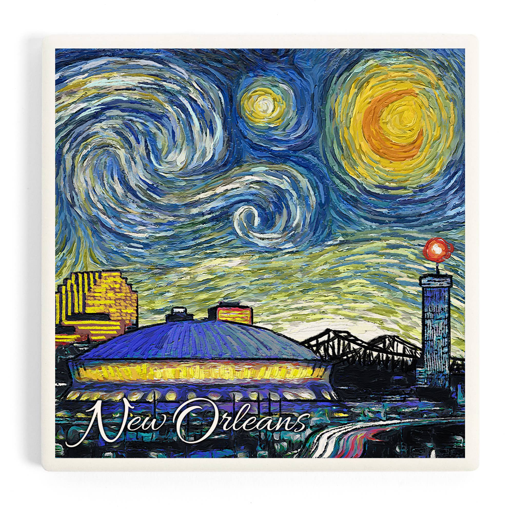 Our original iconic and neighborhood-specific photos are dye-sublimated onto ceramic drink coasters and backed with protective cork. All of our handmade gift items are high quality, functional art pieces that capture our customers' memories. They make great housewarming and weddings gifts as well as souvenirs. Clean with a damp cloth. Our tiles are 4.25" square. This image was taken in Memphis, Tennessese.