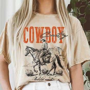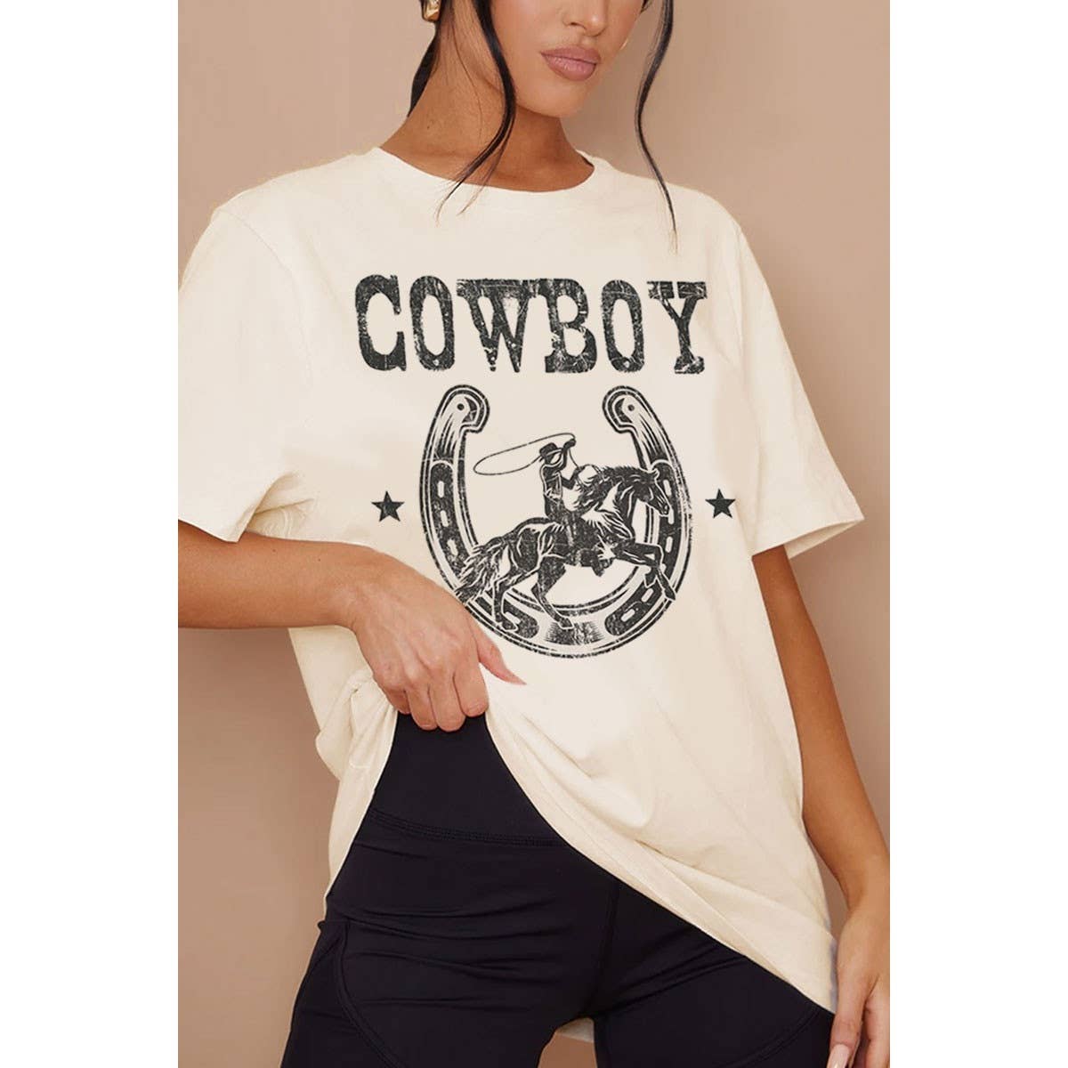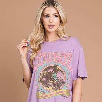 No reviews for Women Cowboy Graphic Print Oversize Solid SS Top yet.