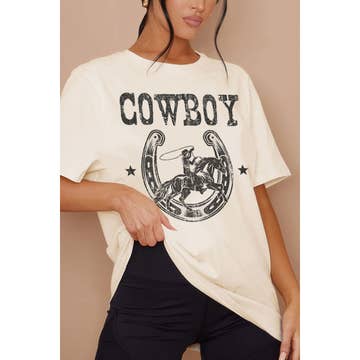 Wholesale Women Cowboy Graphic Print Oversize Solid SS Top