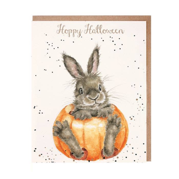Rabbit In A Jack O Lantern Pumpkin Blank Card, Fall Harvest, Bunny Decor, Kitchen Wall Art, Funny Animal Art, Cute Whimsical Unique 36AS -Blank Inside white card with a matte finish -5x7 when folded includes a white envelope -Individually packaged in a sealed cellophane sleeve -Hand made in USA