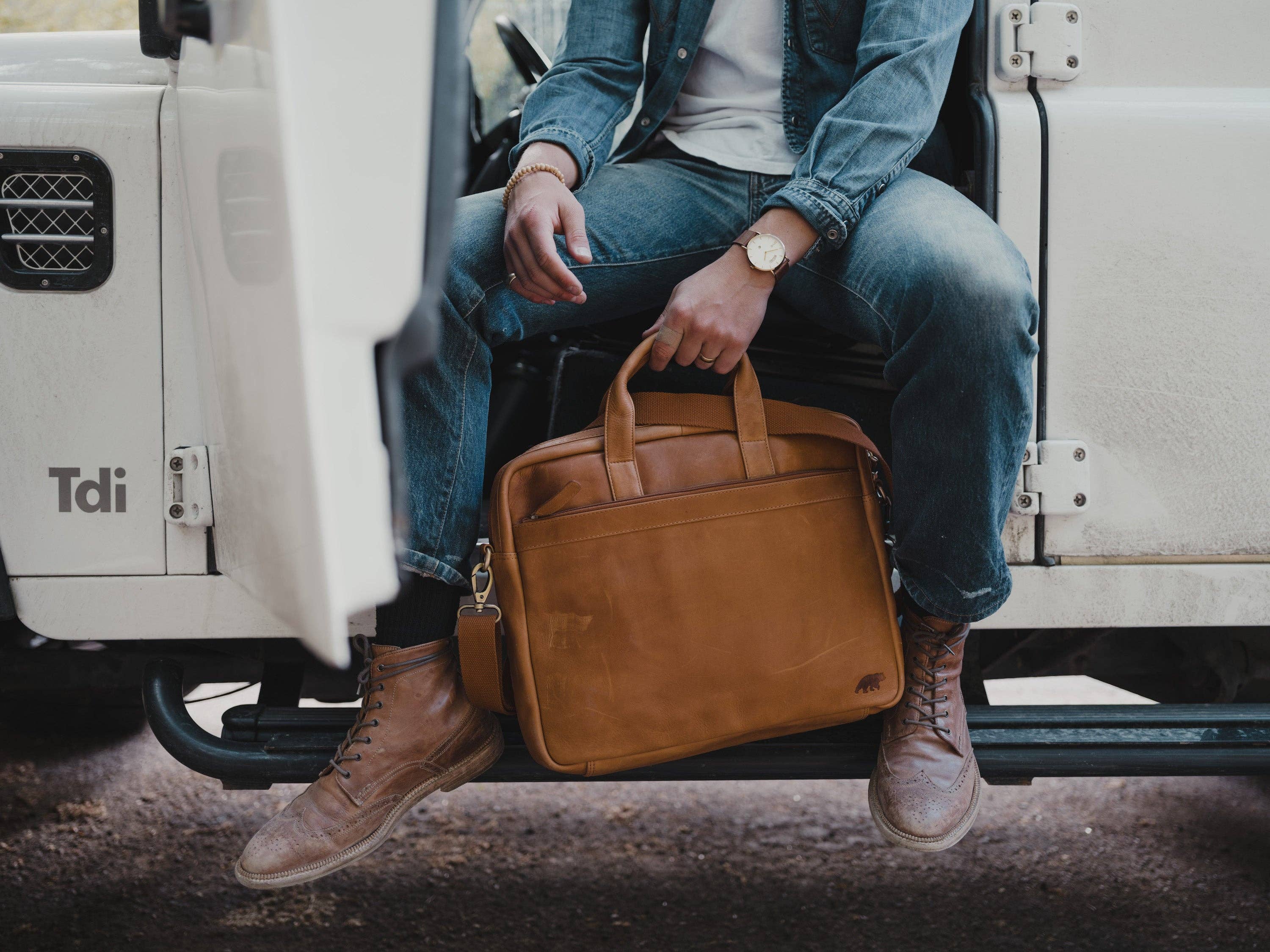 The Abai Leather Laptop Messenger Bag makes for a stylish work, school, or university bag. It offers plenty of space for your laptop, books, and documents. Complete with a nylon inner lining, the leather satchel bag includes a zip pocket at the back, two front pockets, an inner zip pocket, two drop pockets, and an extendable detachable shoulder strap. It offers two compartments with one designated laptop compartment that snugly fits a 15" laptop, and the other offers plenty of space to organise files and journals. Materials Full-grain buffalo leather Fabric interior lining Antique Brass Hardware YKK Zippers Features Two spacious compartments Designated laptop compartment Adjustable shoulder strap Rear zipper pocket Inner zipper and drop pockets