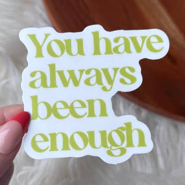 These adorable affirmation stickers are here to lift your spirits and brighten your days. These stickers are perfect for anywhere...your laptop, notebook, water bottle, mirror, or anywhere you'd like a dose of positivity and inspiration. The "I am enough" sticker is the perfect reminder when the doubt and limiting beliefs start to creep in. You are more than enough in every way and you do not give yourself enough credit for that. These die-cut stickers are 2.5" long.