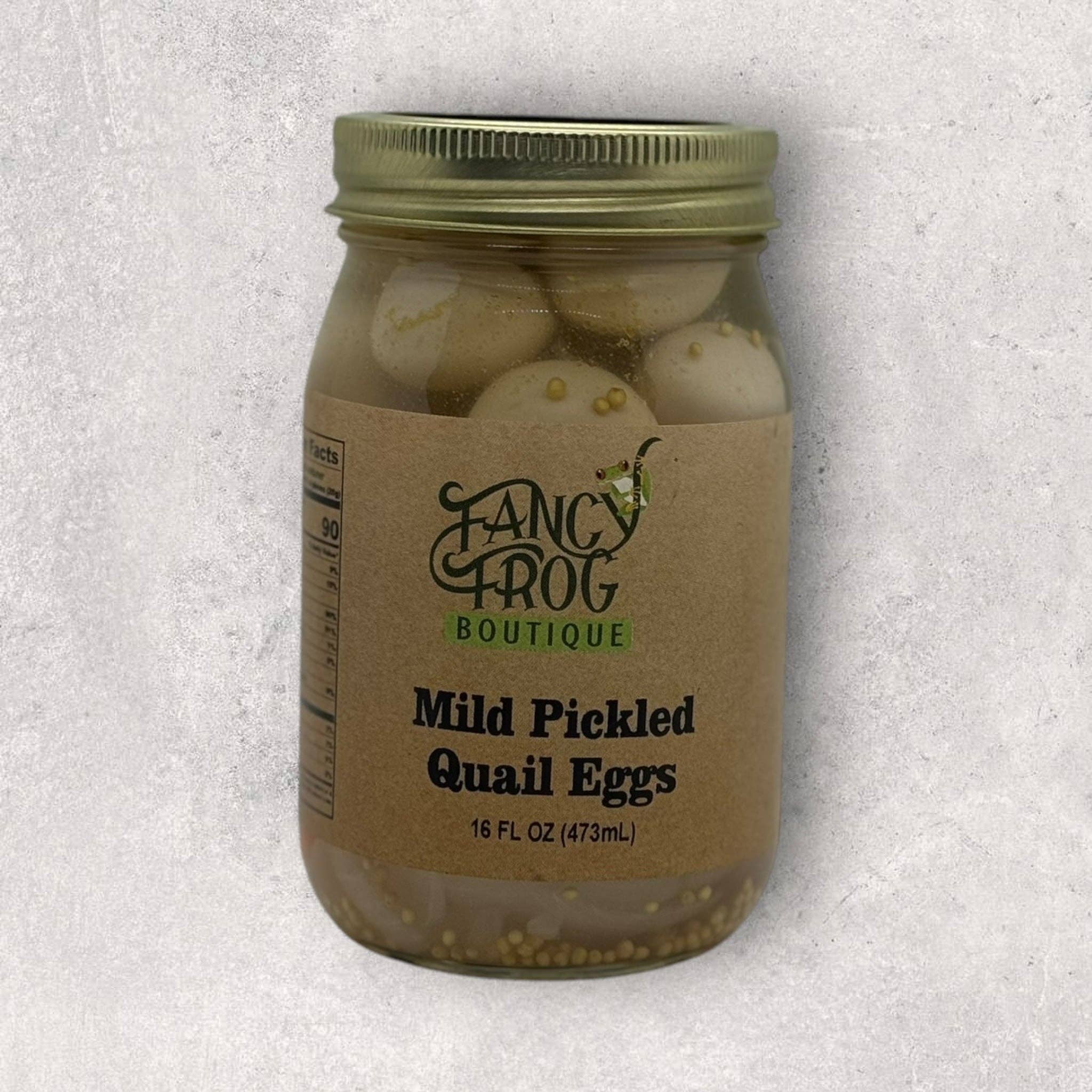 SKU: 10360 Made in United States Shelf life: 12–24 months Ingredients: Quail Eggs (quail eggs and water), vinegar, water, pickled jalapenos (jalapeno peppers, water, vinegar, salt and calcium chloride), salt, garlic & spices Product Language: English UPC: 817165020671