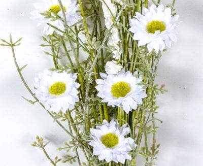 PRODUCT Artificial Flower - Handmade Artificial Flower Stem FLOWER Daisy DIMENSIONS 14.6" Tall; About 7 daisy flowers per stem MATERIAL Eco PE, Foam COLOR White, Green, Mixed Colors In the traditions of Norse mythology, daisies are sacred flowers which represent innocence and purity. Made by hand and placed on 15” stems, these artificial daisy blooms supply a room with a clean and cheery aura. Sold in bunches, the faux silk flowers can be arranged in baskets, buckets, pots or planters. SHIPPING INFORMATION Product ships out within 48 business hours of receiving order; Ships to United States, Canada and the rest of the world; Ships via USPS, UPS or FedEx; Ships as small parcel