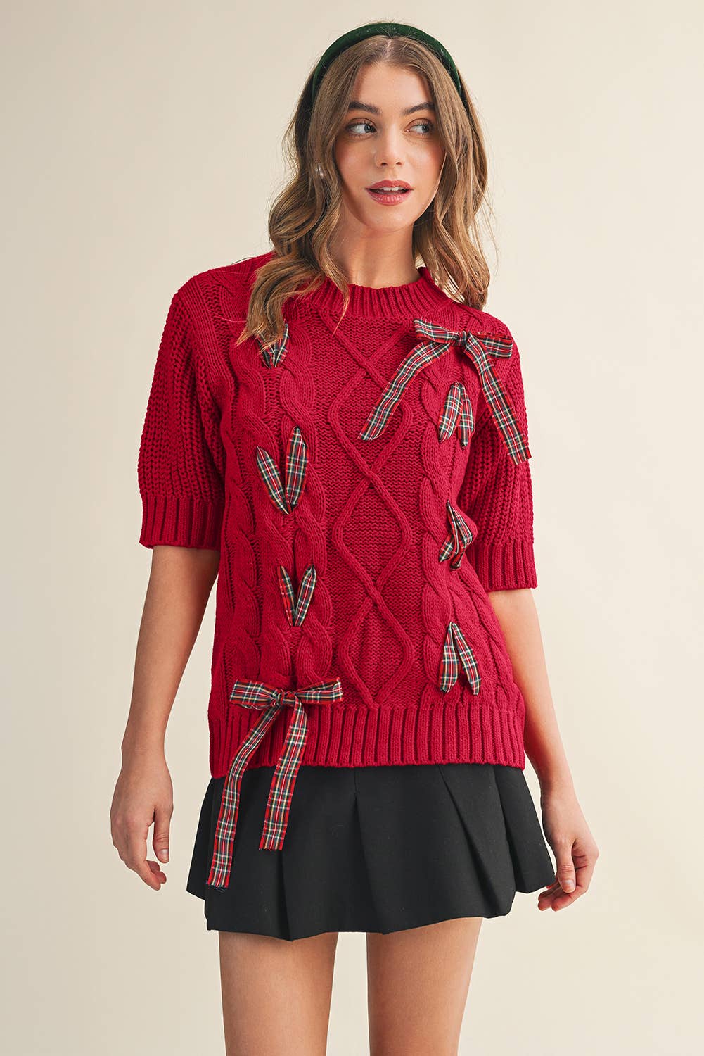 Wholesale LDC Cable Knit Christmas Holiday Puff Short Sleeve Sweater