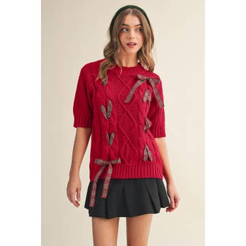 Little Daisy Closet - Wholesale Knit Sweater - Women's - LDC Cable Knit Christmas Holiday Puff Short Sleeve Sweater6