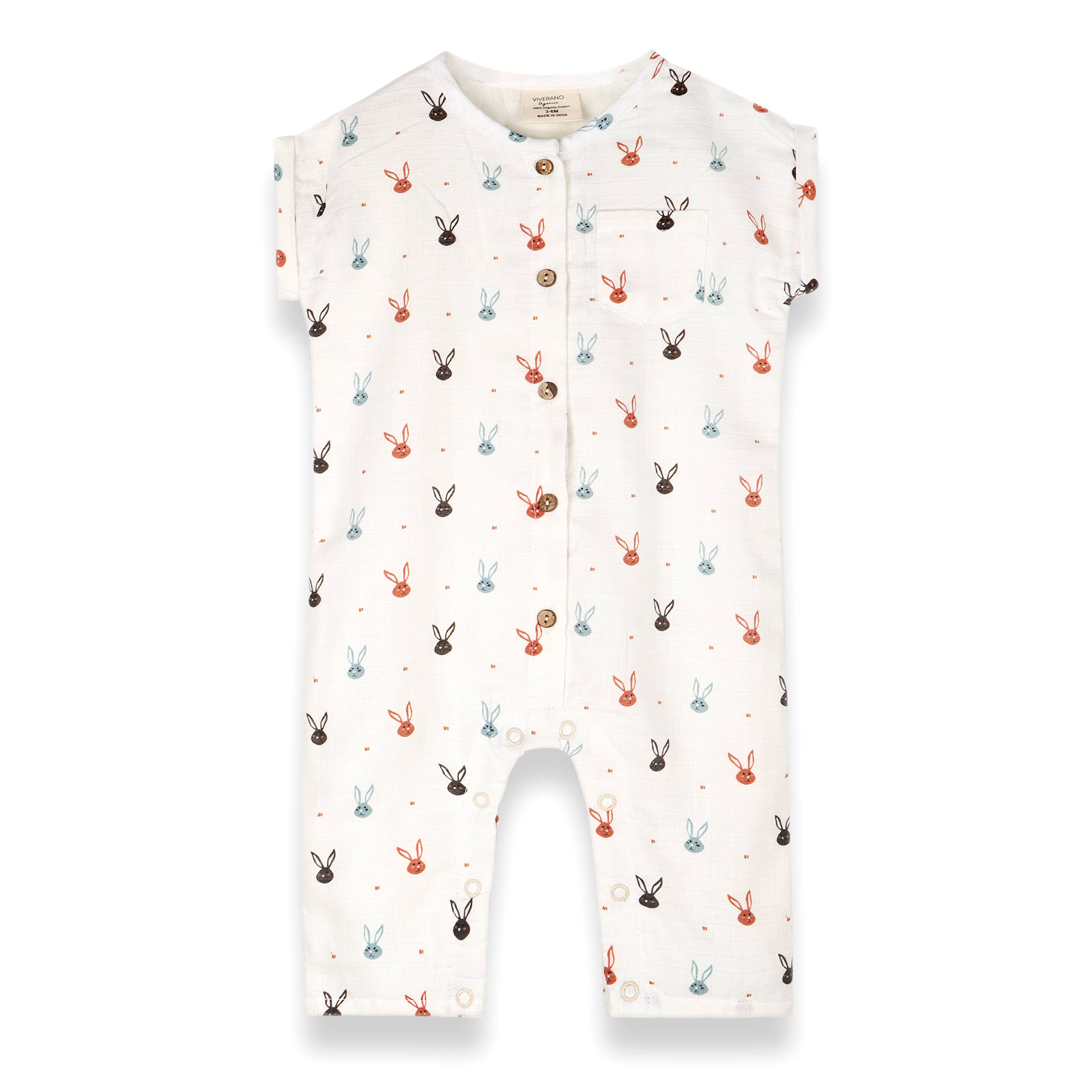 Sleeveless organic muslin short baby romper with contrast pocket. - Button front and snap button at the crotch for easy diaper change. - 100% ORGANIC COTTON MUSLIN with organic cotton voile lining. - Soft, lightweight, breathable, cozy, and comfy; perfect for spring and summer. - Digitally printed for extra softness. - Chemical free & non-toxic formulation, eco-friendly & sustainable. - Machine wash and dry, durable and long-lasting. - Ethically produced in India from small farmer-sourced cotton. Viverano, an American brand, was founded in 2013 to produce eco-friendly, pure, organic baby clothes. Viverano baby clothing is known for its soft hand feel and high quality. Pamper your precious babies with our non-toxic, lightweight, all-season, natural baby outfits. Experience 'Organic Comfort' by Viverano, a family-owned small business.