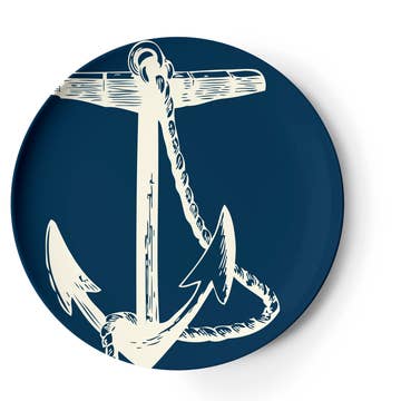 The Scrimshaw collection is inspired by the pieces sailors on whaling ships would carve into whale bone while out at sea. Scrimshaw Dinner Plates Set of Four melamine dishwasher safe do not microwave BPA free measures 11" D Set of four different designs