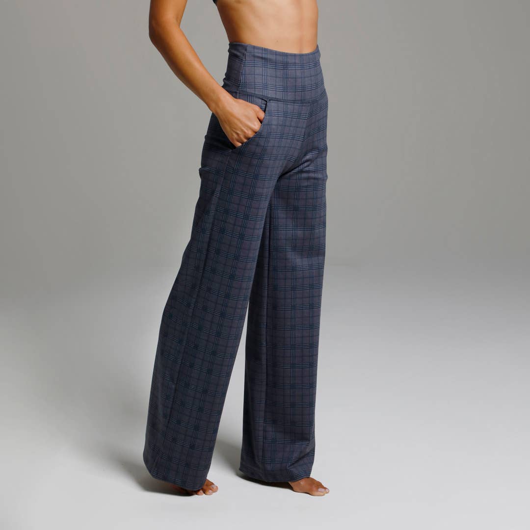 High Waist Wide Leg Pant (Navy Glen Plaid)