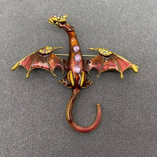 Rhinestone Enamel Dragon Brooch