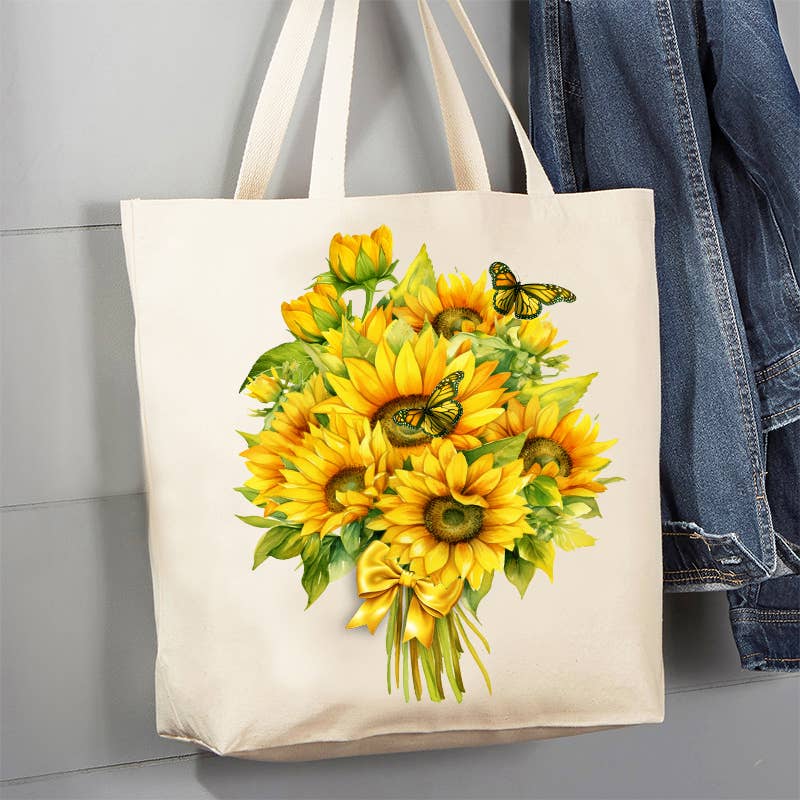 These eco-friendly, durable and stylish canvas tote bags are the perfect addition to any shop. They are perfect for shopping or to carry around your essentials! Designs are sublimated onto one side of the bag using an industrial heat press and quality inks- meaning they are printed and placed to last for years to come! Made of a durable canvas and measuring at approx. 15" x 13.5" Please note- We try to represent the colors to the best of our ability on mockups and in pictures, but physical product colors may vary slightly as every computer and phone screen can show colors slightly different than a physical product may appear.