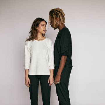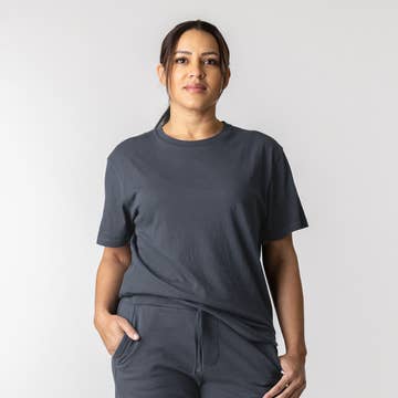 Aesthetic: Bohemian and Casual Care Instructions: Machine wash Color: Pink and Purple Fabric: 55% Hemp, 45% Organic Cotton Fit: Unisex Neckline: Crew neck Occasion Theme: Bachelorette, Everyday, and Valentine's Day Occasion: Everyday and Loungewear Sleeve Length: Short Sleeve Weight: 113.4 g (4 oz) Product Materials: Organic, Plastic-free, and Vegan Packaging: Plastic-free, Recyclable, Recycled, and Reduced