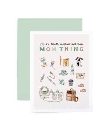 This mom card features a charming measuring cup pattern, paired with a sweet, baking pun. Great for: Mother's Day, mom appreciation, mom birthdays Amy Zhang products are a true celebration of New England small businesses, community, and partnership. Each design features an original watercolor illustration, created by Amy in our historic Providence, Rhode Island studio. Greeting cards are printed on locally-sourced paper and packaged by our woman-owned partners in Massachusetts. DETAILS — - Single folded greeting card (blank inside) - Card measures 4.25" x 5.5" (A2 size) - Matching gray envelope included - Card and envelope are packaged in open top clear sleeve
