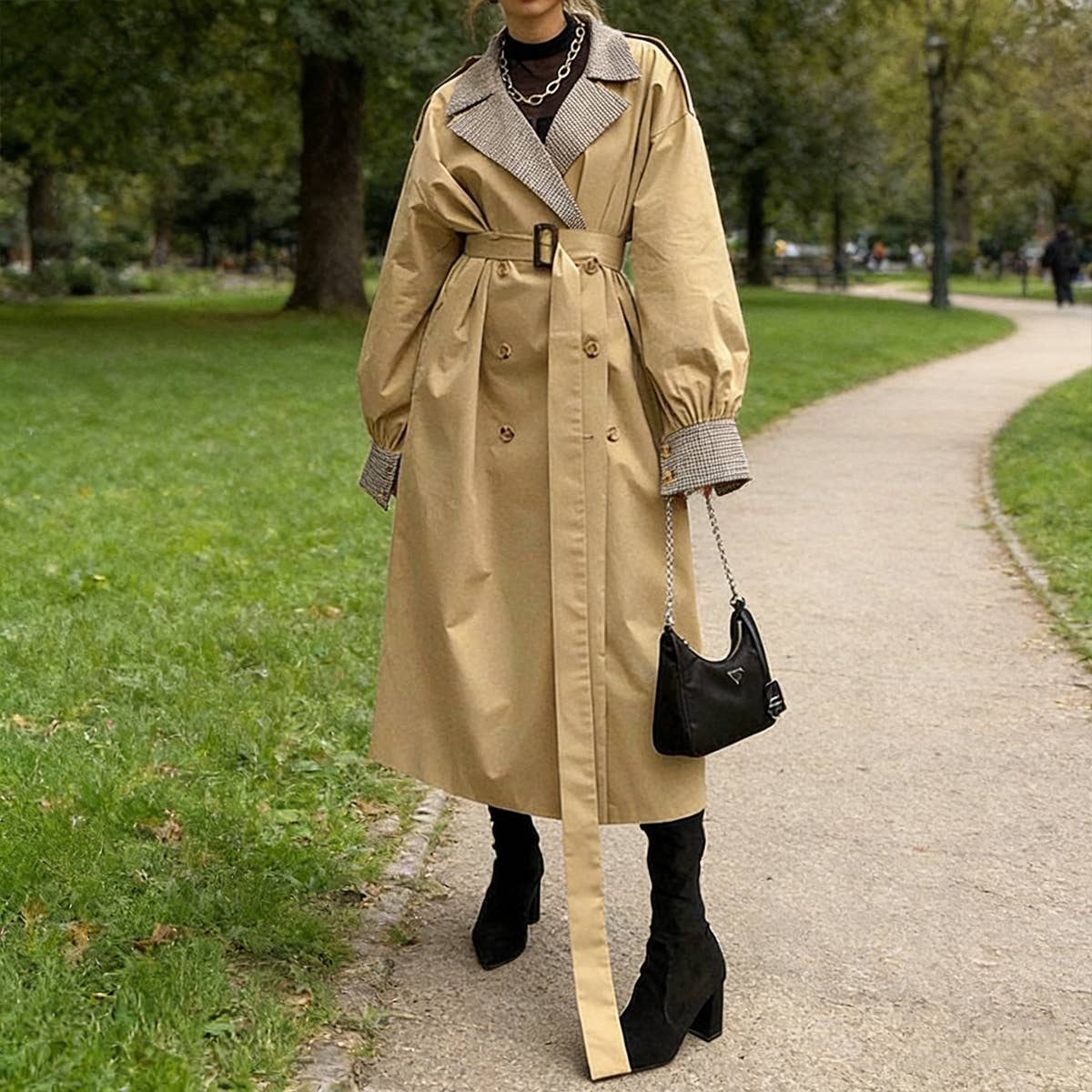 Straight trench coat with clean lines. It features a high collar, long sleeves, and a concealed zip closure under a buttoned placket. Welt flap pockets complete the piece, adding a practical and functional touch. Our model is 1.76m (5'7") tall and wears a size S.