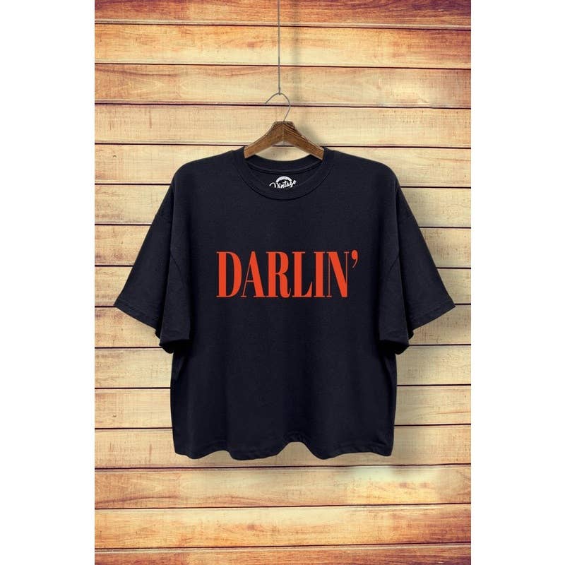 100% Cotton graphic short top with an authentic vintage look and a softer feel that is only possible to achieve by using our special enzymes to dye and mineral wash processes - Pre-shrunk - Washing Instructions: - Wash in cold water recommended - No bleach and preferably colors alike - Tumble dry low - Model is wearing a size Small (LENGTH: 21" / BUST:36") Graphic tee & top garment dye. Screen printed t-shirts T SHIRTS , SHIRT , DARLIN, WESTERN, COWGIRL