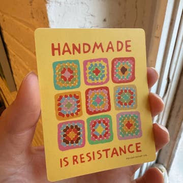 A bold, hand-drawn design featuring a cozy kitchen scene and the message Make Soup Not War. This sticker blends warmth, humor, and a clear anti-war sentiment—art that feels comforting and quietly political at the same time. Printed on high-quality waterproof vinyl with a glossy finish, this sticker is made to last. It holds up well on water bottles, laptops, notebooks, phone cases, and car windows, making it an easy, meaningful add-on item for customers.