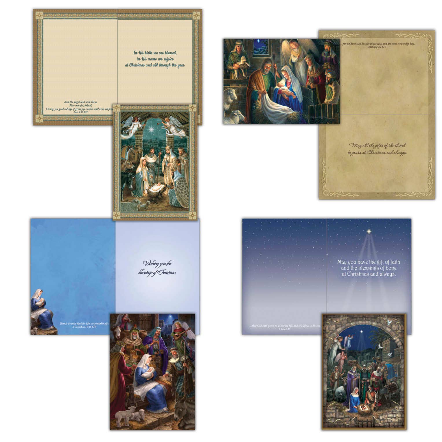 Colorful nativity scene is the artwork in the letter āSā. Front Message ā Silent night / holy night Inside Message ā Wishing you blessings of the season as we celebrate His birth. Merry Christmas Special Features ā Glitter; decorated inside 26 Cards and Custom Envelopes Card Size 4 in W x 6 in H Artist - Alison McGarrigle