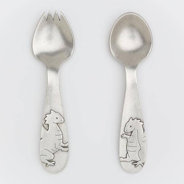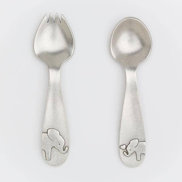 Our delightful mama and baby bird spork and spoon are perfect for babies and toddlers just learning to feed themselves! The raised bird designs help little hands grip securely. We designed these spoons to be sturdy and functional, as well as fun and cute! Once baby has grown, they are sure to be treasured as family heirlooms and passed down to future generations. Each utensil is approximately 4.75 inches (12 cm) long. Gift boxed. Hand cast in our Rhode Island studio from lead-free pewter.