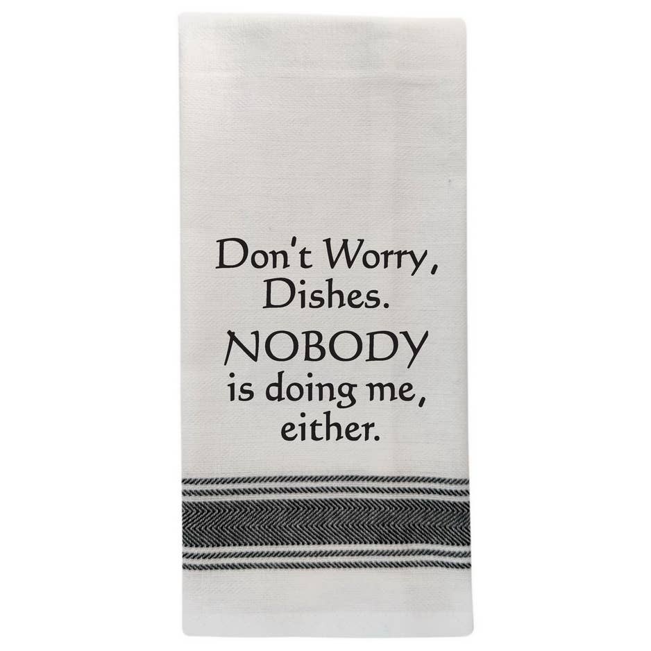 Knotty Nest - Wholesale Tea Towel - Don't Worry Dishes, No One Is Doing Me Either