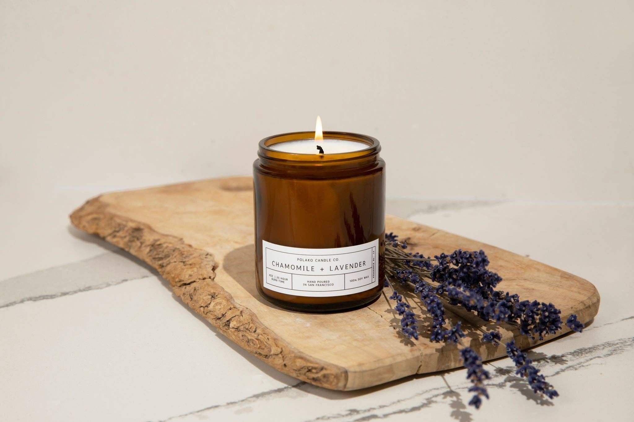 The ultimate candle for relaxation, Lavender Eucalyptus smells just like a day at the spa. This fresh and rejuvenating combination is sure to set your mind at ease. ________________________________________________________________ Often Wander candles are made with 100% natural soy wax, quality essential and fragrance oils, and a cotton wick. Clean and slow burning, these 6 and 12 ounce smooth and creamy soy candles have 40 and 80 hour burn times. *Samples come in the 6 ounce size. Hand-poured in San Francisco, CA.