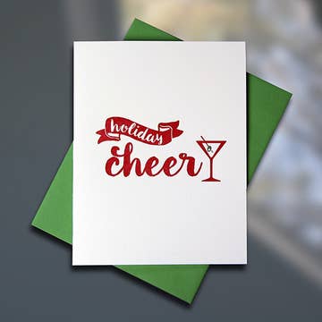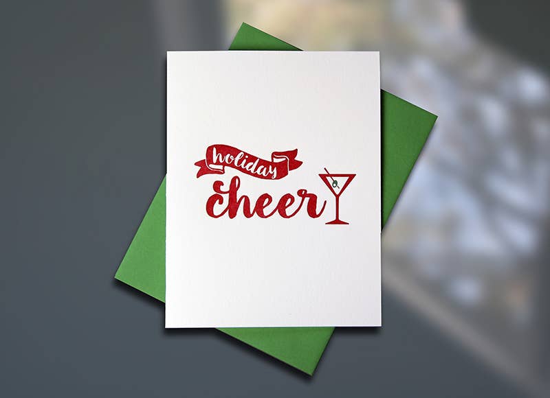 The perfect season's greeting to embrace the festive cheer with a spirited toast! • A2 size card & envelope (4.25 x 5.5") • Folded card, blank interior • Printed full color on cream 110lb cardstock • Designed & printed in the USA
