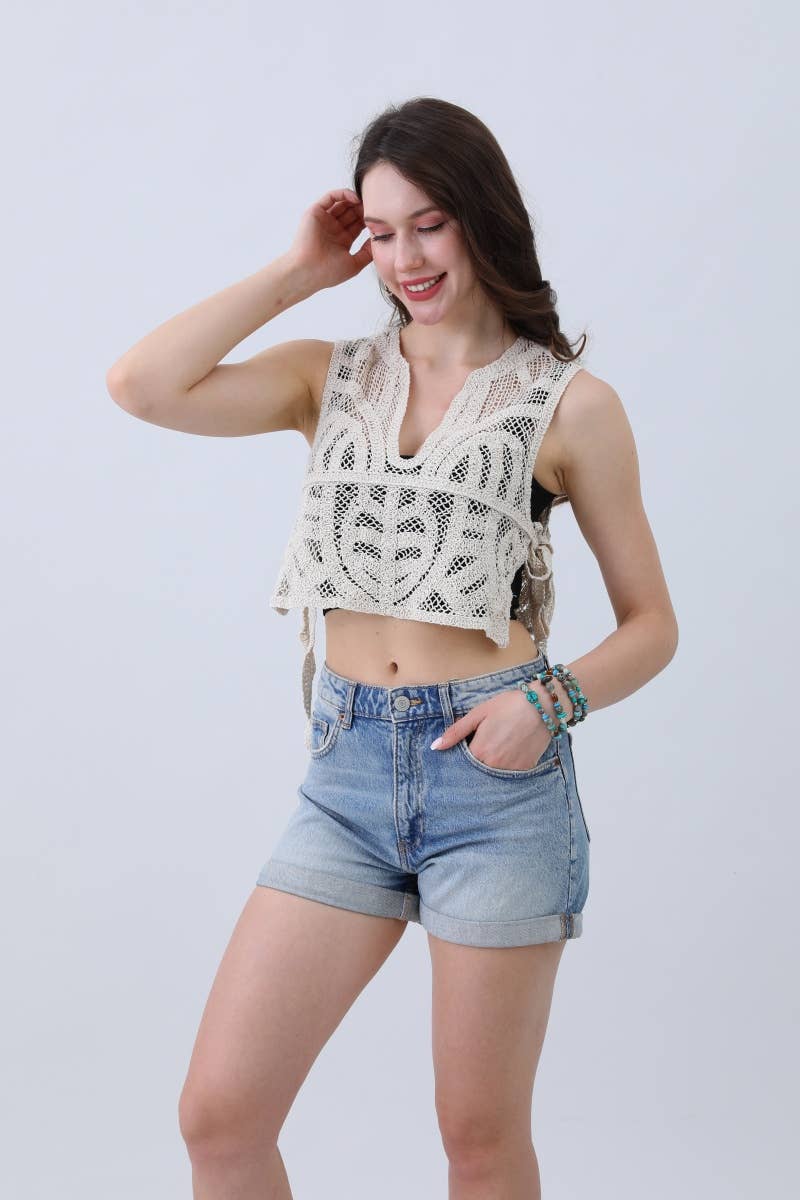 Wholesale Ultimate Beachwear: Boho Crochet Kimono with Lace Details ๐