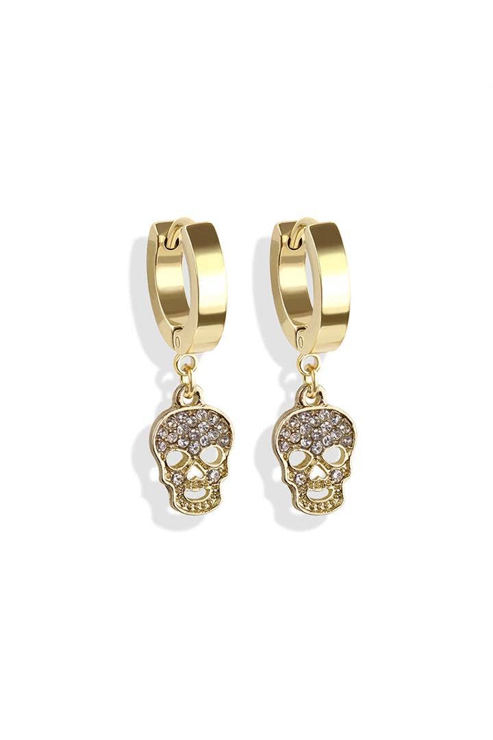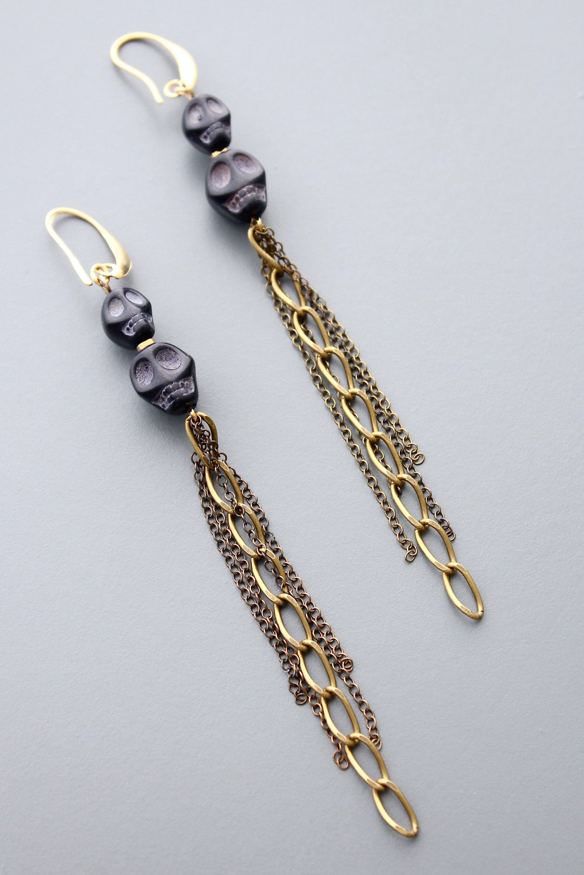 Gothic Handmade Brass & Gold Skull Dangle Earrings
