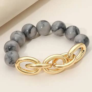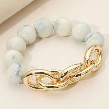 Marbled Round Shaped Beads Pearl Beaded Stretch Bracelet