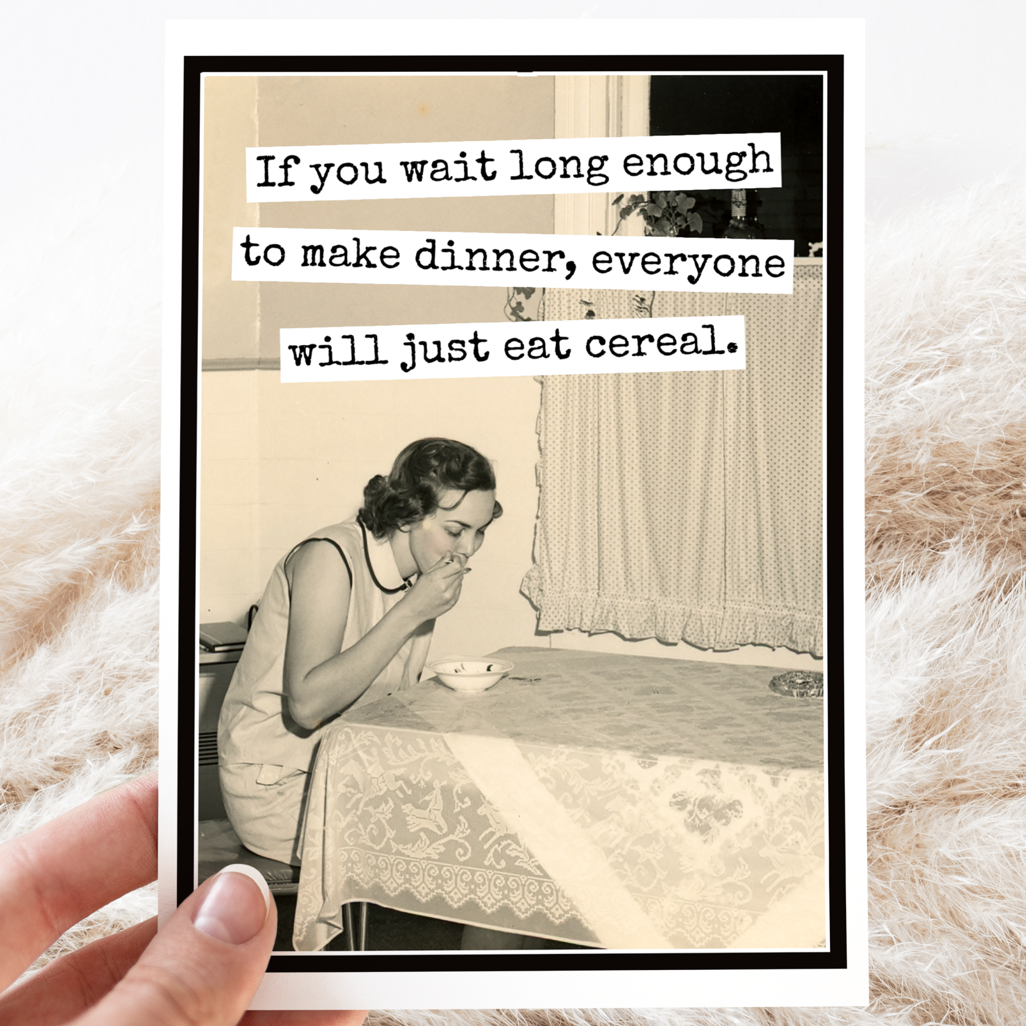the original hat+wig+glove card line offers something mildly offensive for almost everyone you know. from discouragement to blunt observations, we've got you covered. today i will live in the moment unless it is unpleasant in which case i will eat a cookie - cookie monster - 1-color letterpress on 3.5 x 5 inch grey cotton paper card - packaged with a grey envelope and in clear sleeve - available as single cards