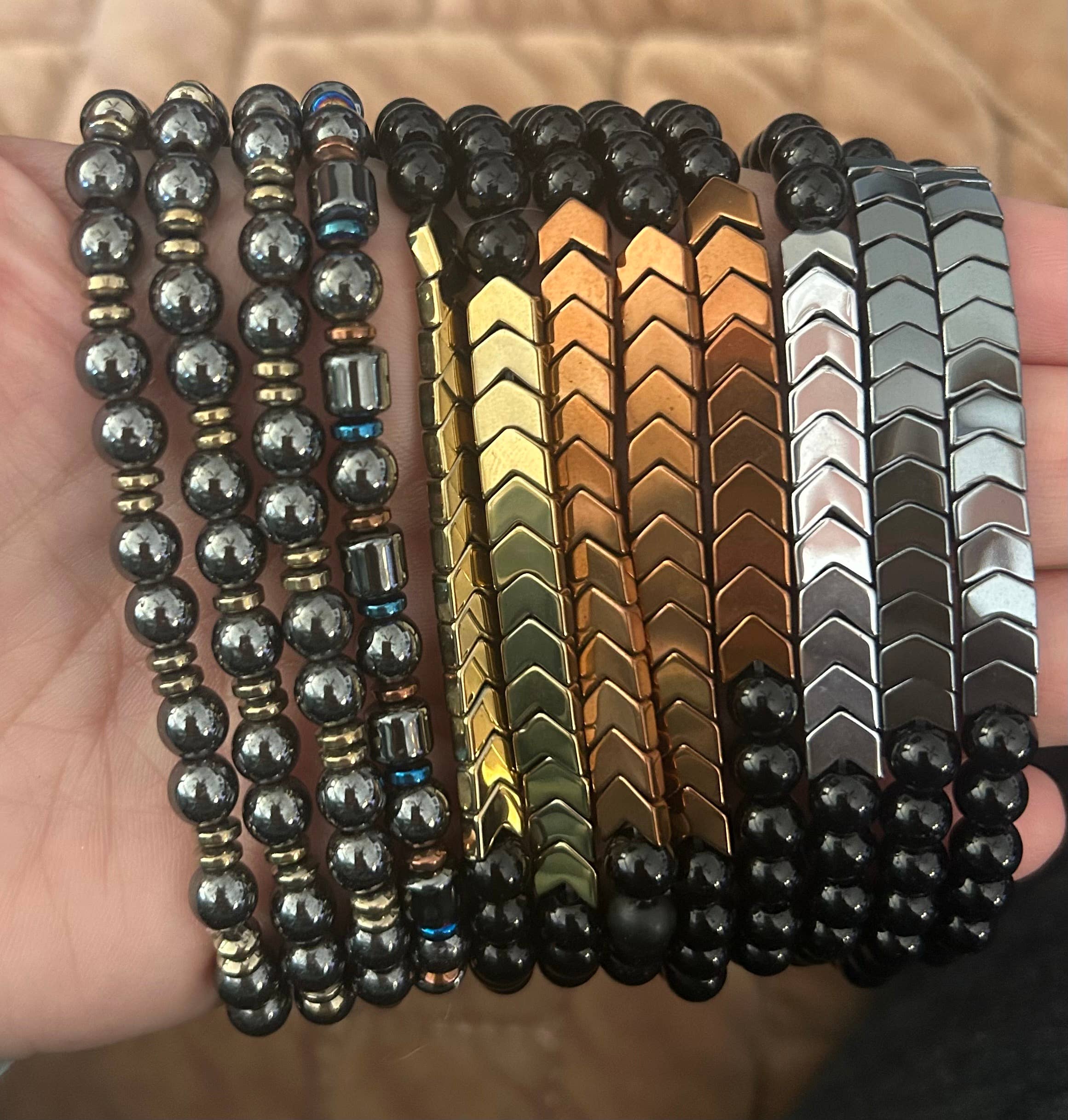 Men's Gemstone Bracelets Onyx and Hematite-Assortment 12 Pcs