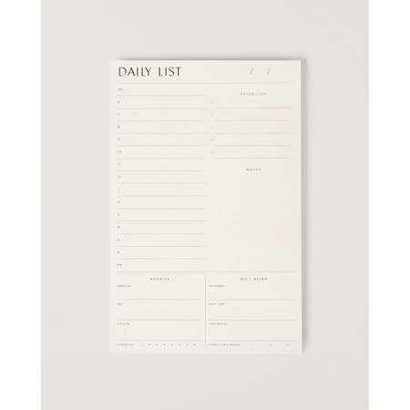 A notepad with a magnetic backing designed to manage the daily moments of life. With clean lines and less pressure, this is the neurospicy's dream planner situation. Slap it on your fridge to update daily, or punch holes in the pages to add to your favorite hardbound planner!