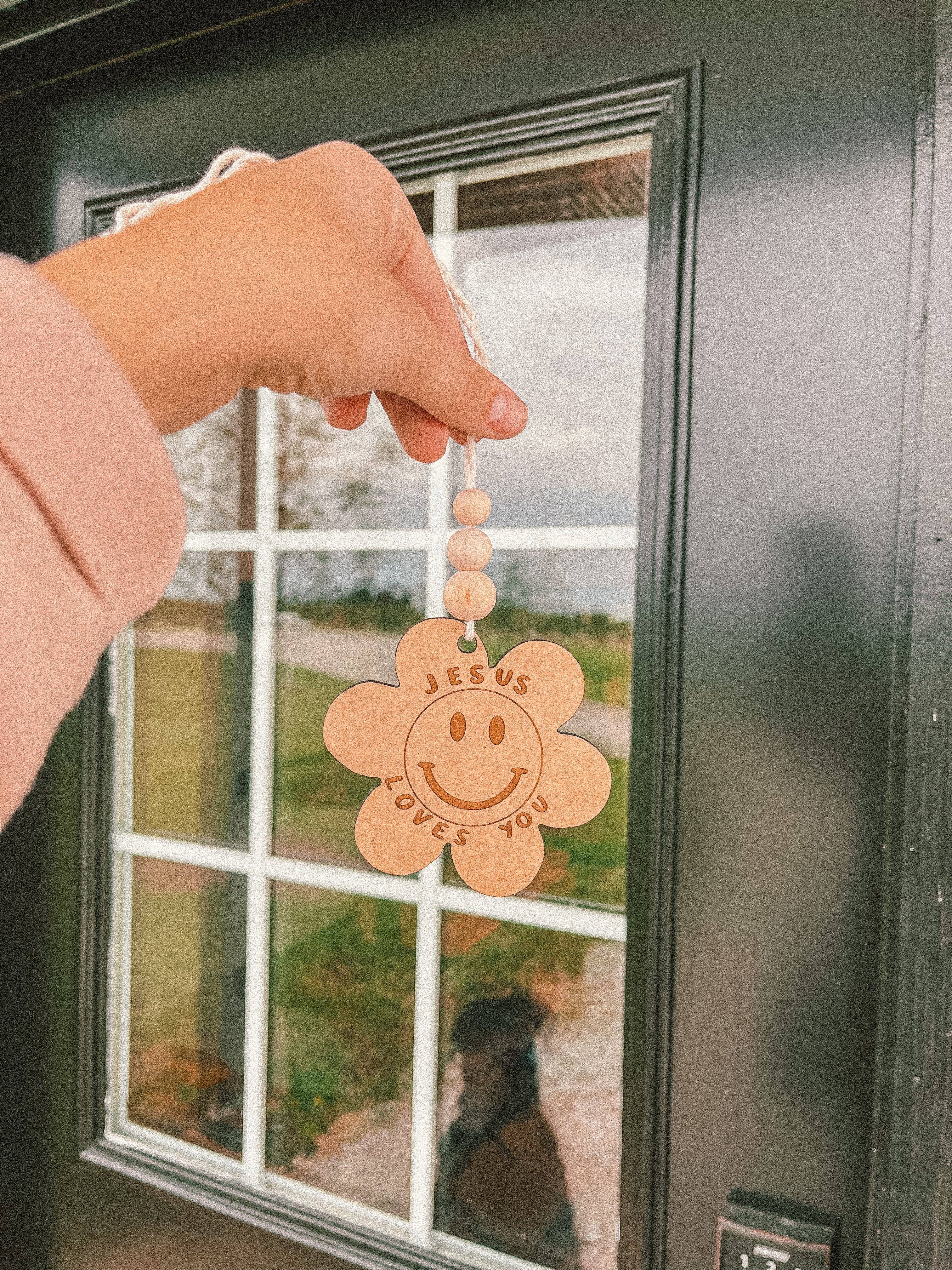 A happy little reminder for your mirror!!:) 'JESUS LOVE YOU' Our mirror decals works on any smooth surface such as mirrors, walls, car windows, or glass. Size: 4.71″ × 5″ White lettering (Comes with application instructions ) HOW TO APPLY: * Remove the blue backing * stick to your surface * rub gently with a hard card * slowly pull the transfer paper off to the new surface! ENJOY:)!!