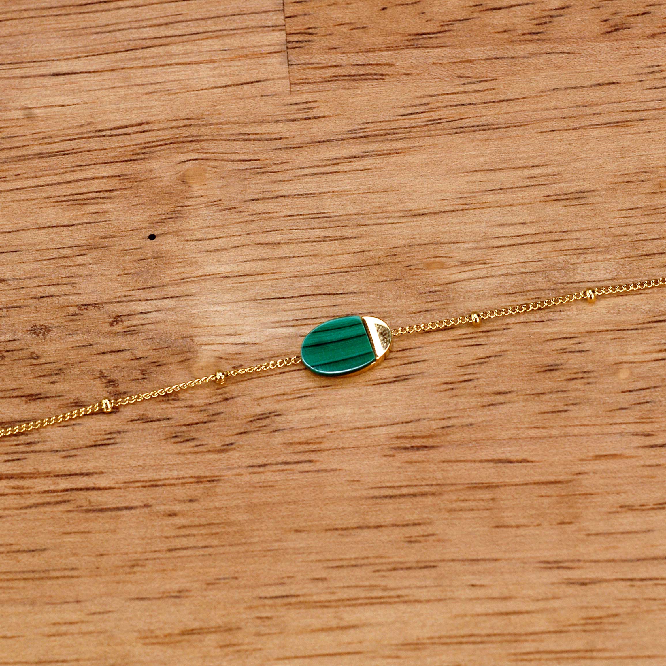 Magnificent bracelet and superb necklace in steel and stones, featuring a sumptuous jade green color that will highlight your display.
