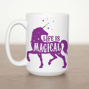 Mystical Collection. These mugs feature mystical, magical themes. The design is repeated on each side of the mug. Dishwasher and microwave safe.