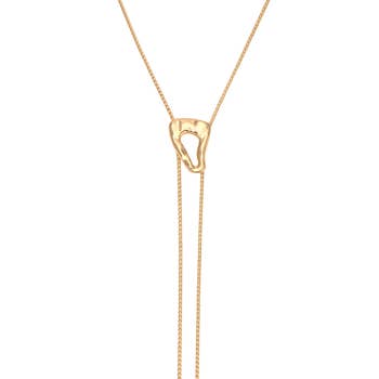 A dynamic geometric necklace. This lariat-style piece is all about shape and texture, combining the bold colours of each orb bead with the smooth surface of the metal discs. Wear it with the pendant hanging at the bottom of the chain, or move the orbs upwards to make this versatile design into a lariat! Materials All metals are brass finished with plating (see below) *Orbs are solid acrylic with silk coating (*Nickel Free) *Orbs for the GG & GA colour ways are Tinted Glass *(Please note: these glass beads are sturdy and are not easily broken) Finishing 12K Gold, Rhodium, *Black Zinc on brass (*Nickel Free) Dimensions 1 mm brass snake chain, plating as noted above Approximately 31 1/2" long, *Slight variations may occur