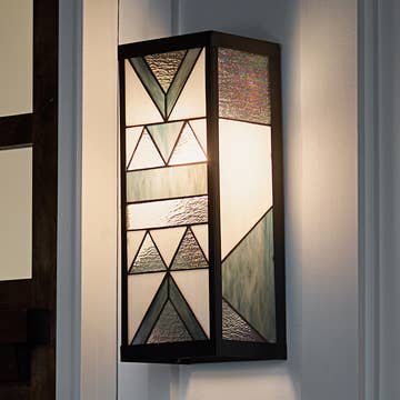 The 11.75"H Amber & Gray 1-Light Outdoor Lantern Wall Sconce from River of Goods brings a little extra character and warm, comforting lighting to your home’s exterior. This light sconce features a traditional lantern design with a bronze look for sleek appeal, while the shade is crafted using cut and stained glass in amber, grey and white hues for statement style. Plus, the glass features an oil-rubbed finish to help prevent scratches. The housing is made from durable metal to lend lasting use and an authentic look you'll appreciate. Mount this stained glass wall lantern on the wall near an entry or patio for a gorgeous addition to your exterior. Overall Dimensions: 10.75"L x 9"W x 11.75"H Metal housing offers durability and lasting use Traditional stained glass design brings elegant appeal Mounts on exterior walls to illuminate entryways, patios, decks & more Uses 1 E26 100-watt max. incandescent or 9-watt LED bulb Clean with damp cloth or lemon oil polish; dry with clean cloth