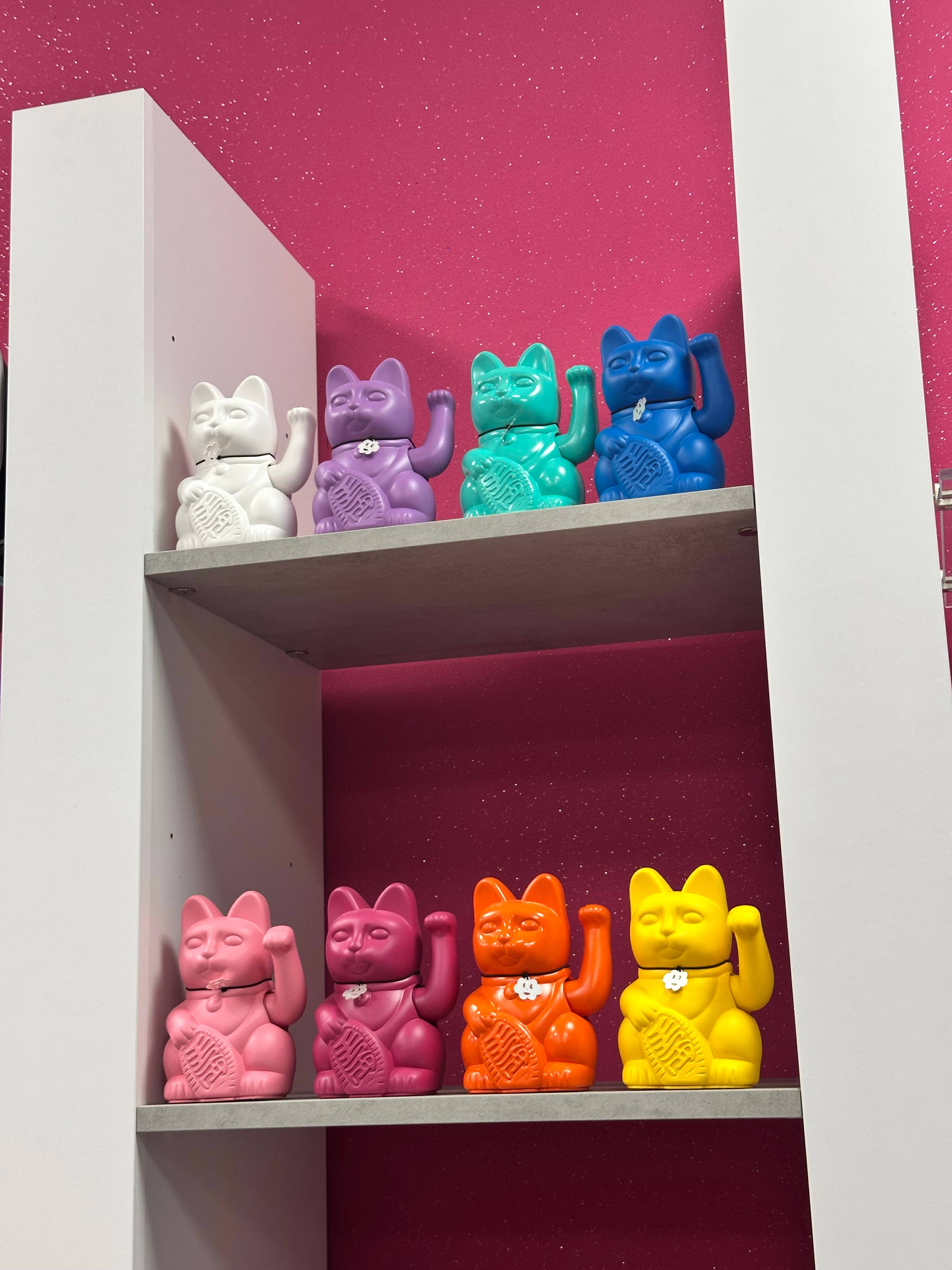 Luckycat, fortune cat or manekineko of Diminuto Cielo mauve. Diminuto Cielo luckycat is a fun, colourful and cheerful interpretation of the classic Chinese lucky cat or maneki-neko. Each colour attracts a different luck. Mauve attracts: "Freedom, power and love". Don't forget to place it facing the entrance or door to attract luck.