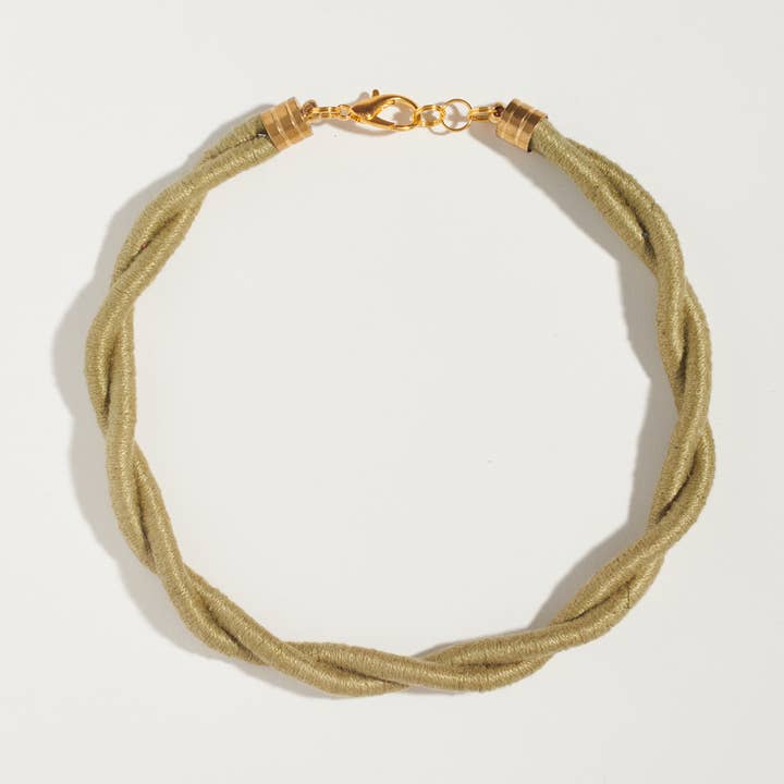 Lanyard knotted necklace with brass accents. A great option for those with metal sensitivities. Shown in Moss Cotton. Modeled in a different colorway for scale only. * 50" cording wrapped in yarn of your choice * lower center lanyard knot * brass end caps * one-size Options: * Yarn color (please refer to the last photo for color names) Handmade in Northeast Ohio by Sara McClelland. Made to order and ships in the timeframe currently noted.