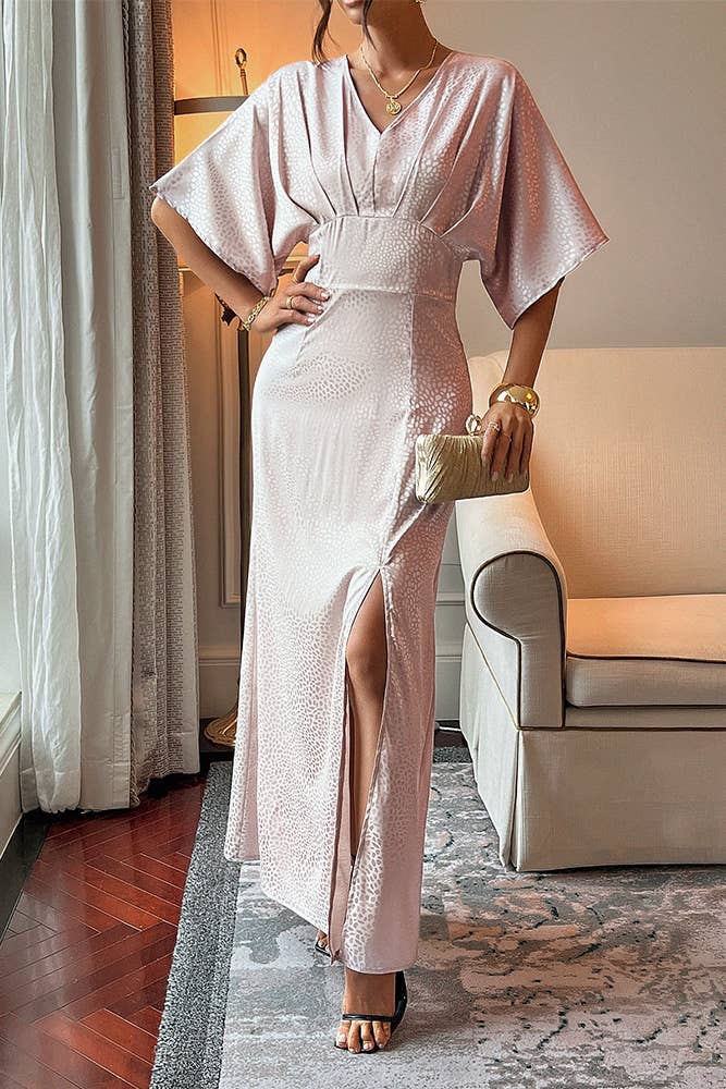 Long Balloon Sleeve Tie Waist Sequin Surplice Dress VD81293
