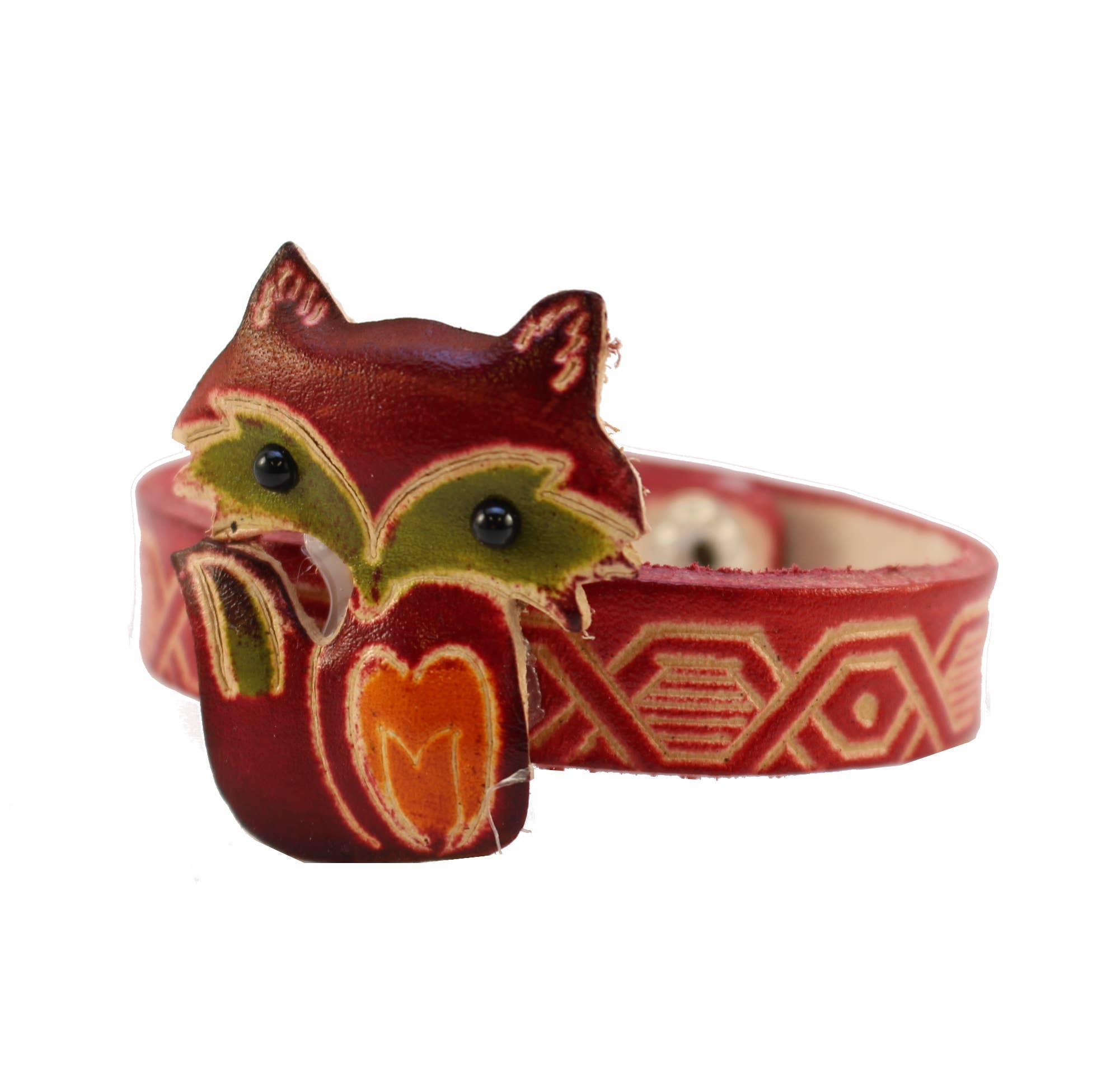 Genuine leather small animal bracelets come in a fun assortment of animals & colors. They measure approximately 7" to 8" long and have 2 sets of metal snaps for adjusting .1/2 wide.