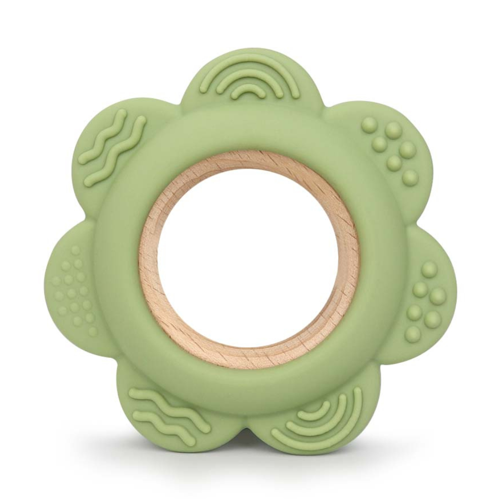 Designed for little hands (and wrists), this ring teether doubles as a bracelet for easy, on-the-go teething relief. The soft silicone texture soothes sore gums, while the polished beech wood adds a natural, modern touch. Materials: Food-grade silicone + polished beech wood Safety: BPA-free, lead-free, phthalate-free Design: Lightweight, durable, and baby-safe A simple yet stylish baby essential built to last — perfect for teething comfort anytime, anywhere. Pairs with Coordinating Pacifier Clip in colors Blush, Sage, Navy, White, Light Gray, Marble, Charcoal and Oatmeal.