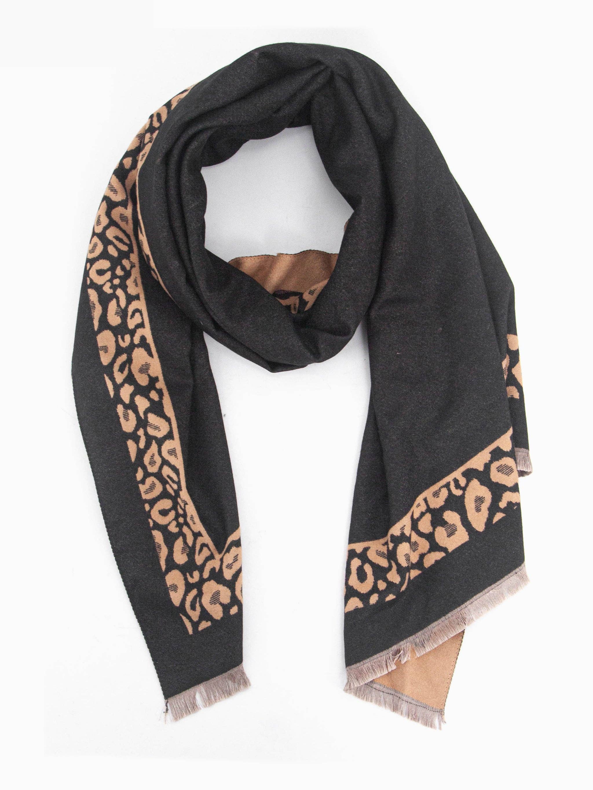 Wholesale Patricia Lightweight Scarf - Dark Grey, Colour Block Leopard