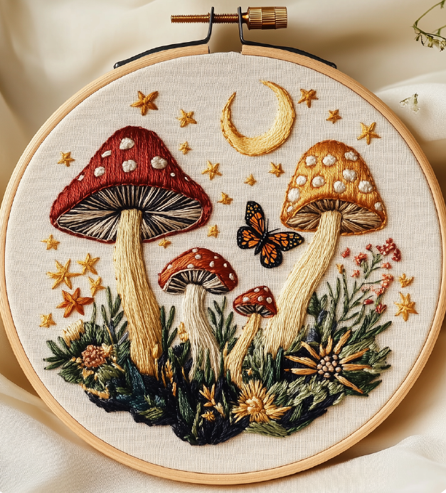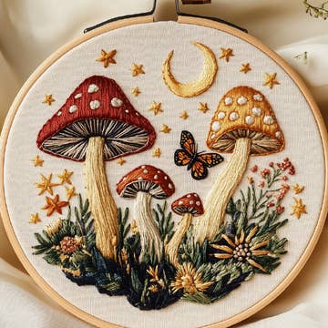 Mushrooms Hand Embroidery - Peel Stick & Stitch Patterns