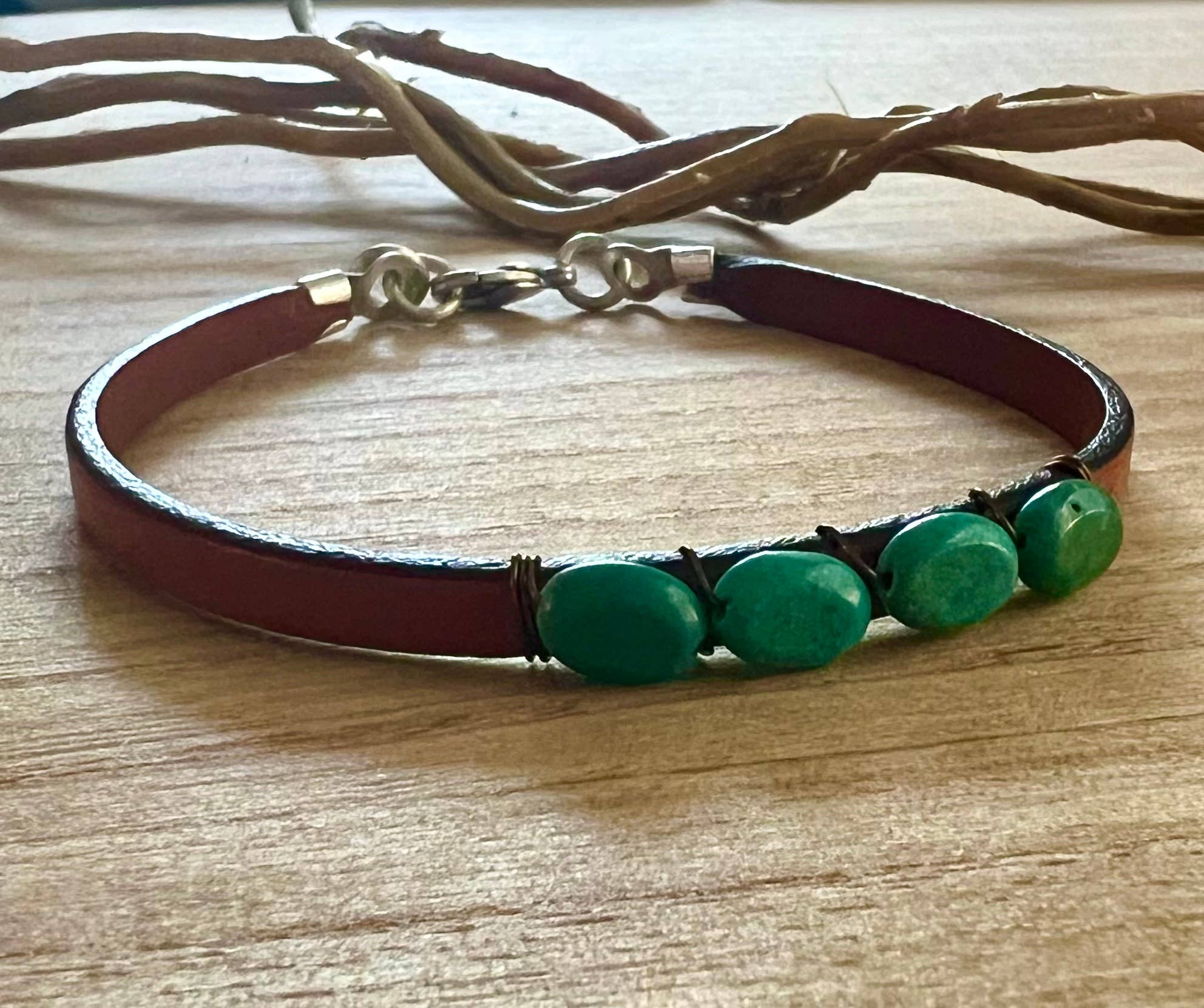 Mostly Tatted turquoise gemstone boho leather bracelet